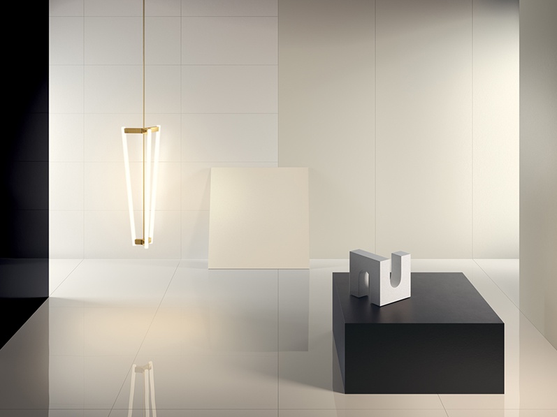 The Black-White collection is composed of 4 colours (Ultrawhite, Snow, Black and Superwhite), available in 2 thicknesses (3PLUS, 5PLUS), 4 finishes (Natural, Silk, Glossy and Smooth) and with the exclusive PROTECT® line of products: antimicrobial floor and wall tiles, designed for healthy, safe and protected living spaces.
